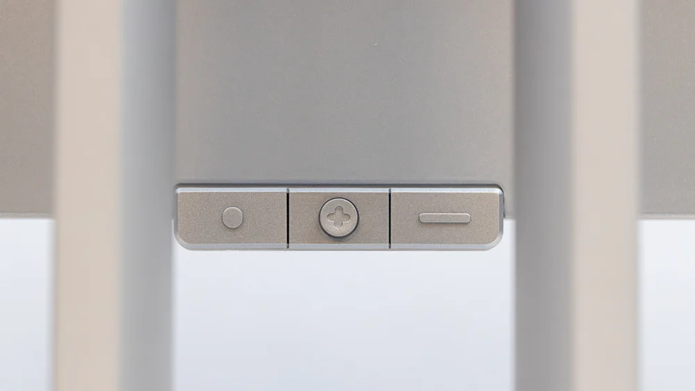 Due piloni verticali ospitano una regolazione precisa dell’altezza di 5,1 pollici, e si ottiene un’inclinazione di 5/23 gradi più una modalità verticale di 90 gradi. Non c’è rotazione.